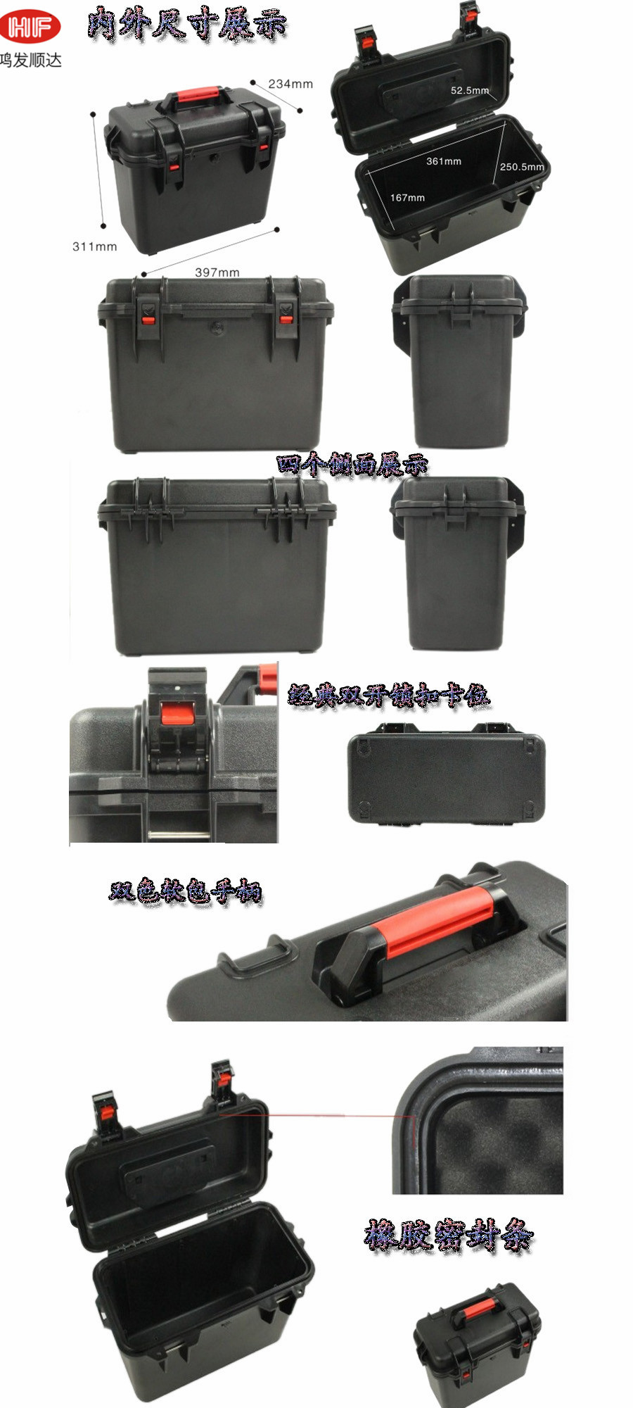 簡要說明:廣泛用于傳媒、公安、消防、軍隊、航空、戶外攝影、野外考察、科學探測等眾多領域的高端儀器、儀表。具有高強度、高抗壓沖擊、防潮、絕對密封、防塵、防水等特點。產(chǎn)品材質:ABS原料,箱體采用高抗沖擊的高分子聚合材料一體注塑成型,密封采用扁型彈性發(fā)泡密封橡膠條,確保防水氣密,所有較軸均采用不銹鋼材質。