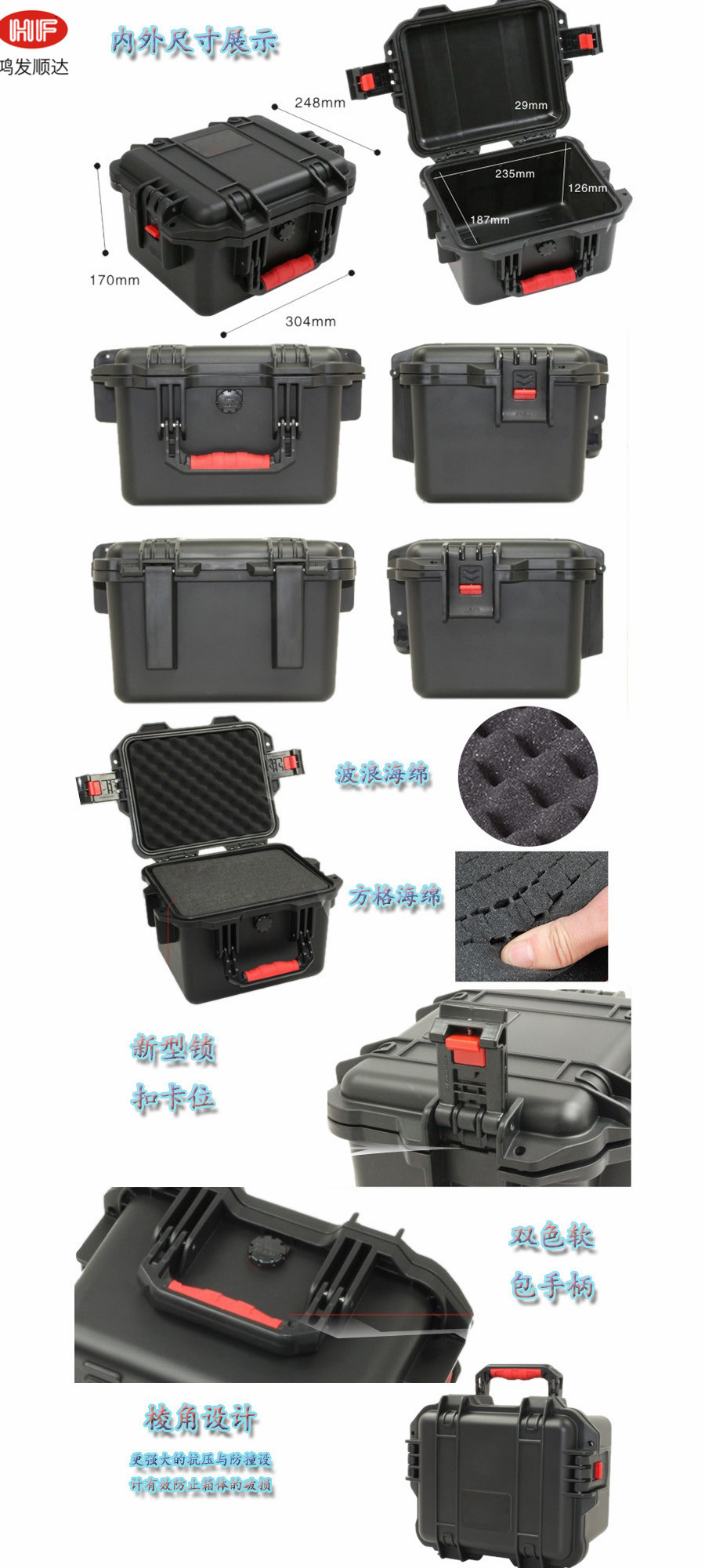 簡(jiǎn)要說(shuō)明:廣泛用于傳媒、公安、消防、軍隊(duì)、航空、戶(hù)外攝影、野外考察、科學(xué)探測(cè)等眾多領(lǐng)域的高端儀器、儀表。具有高強(qiáng)度、高抗壓沖擊、防潮、絕對(duì)密封、防塵、防水等特點(diǎn)。產(chǎn)品材質(zhì):ABS原料,箱體采用高抗沖擊的高分子聚合材料一體注塑成型,密封采用扁型彈性發(fā)泡密封橡膠條,確保防水氣密,所有較軸均采用不銹鋼材質(zhì)。