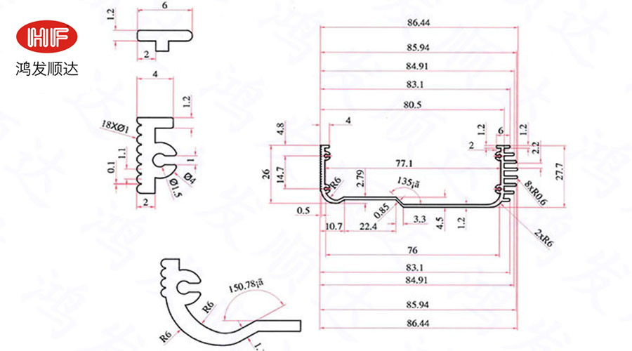 【產(chǎn)品材料】:6063擠壓鋁型材