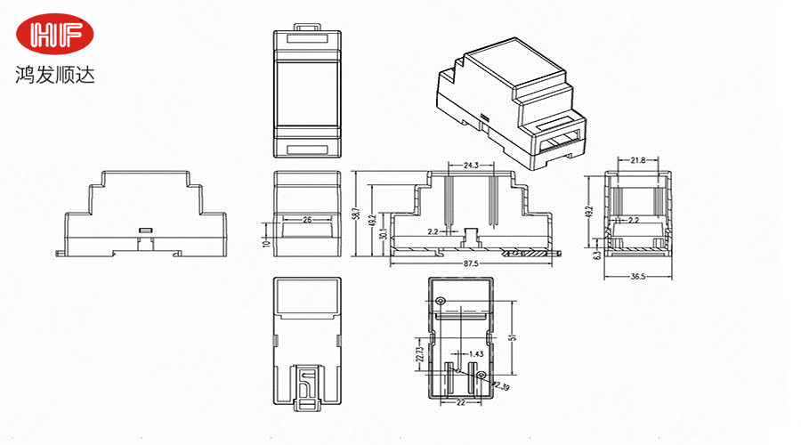 Description: Widely used in various PLC module circuits, controller units, distributor modules, etc. It with complete insulation protection and good heat dissipation. Produced with ABS / PC raw materials, comply with ROHS, have good performance and high temperature resistance, without any renewable materials. The mold can be reopened according to customer requirements